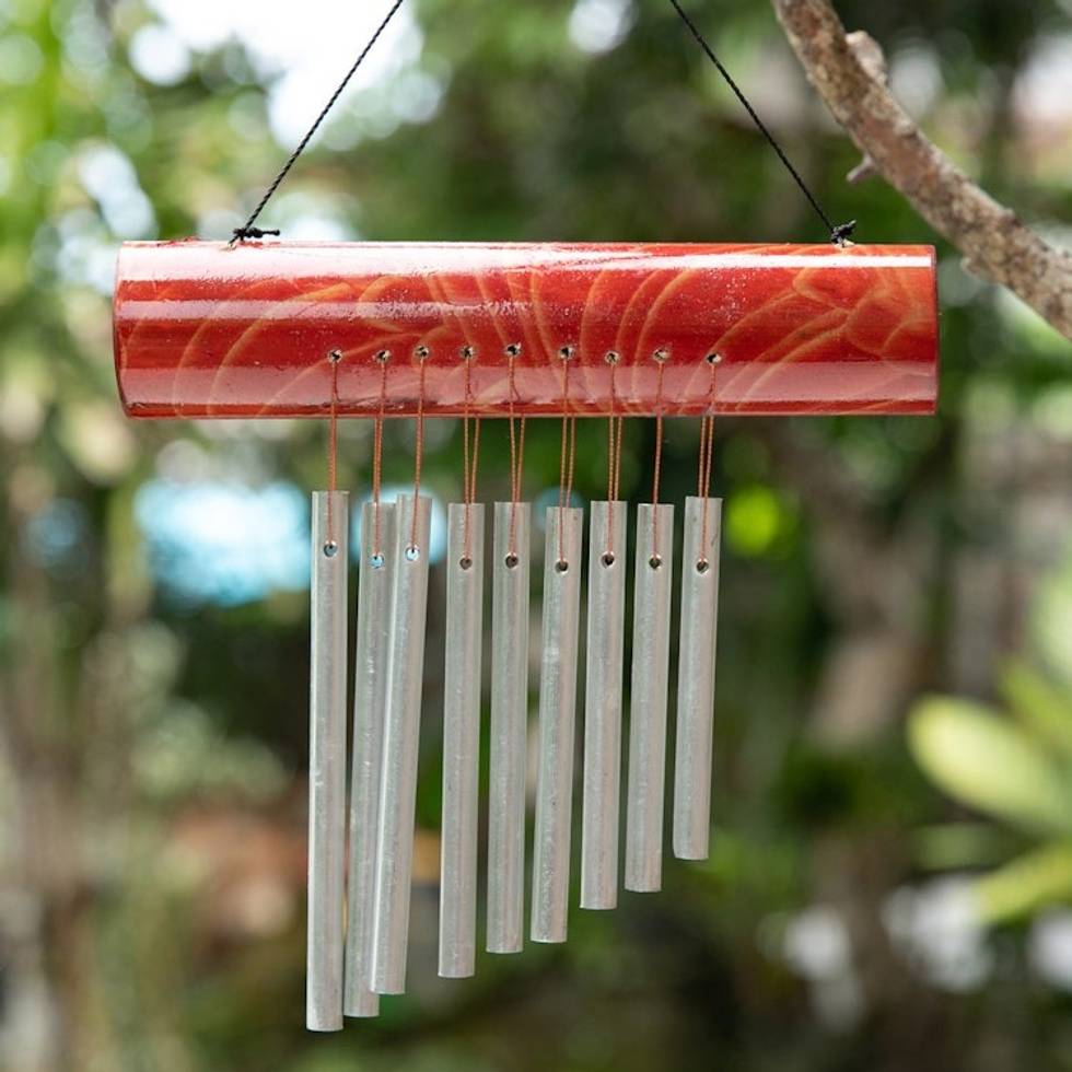 Red Bamboo Wind Chime with Nine Aluminum Pipes from Bali 'Early Morning Song in Red' Item ID: 2671561976