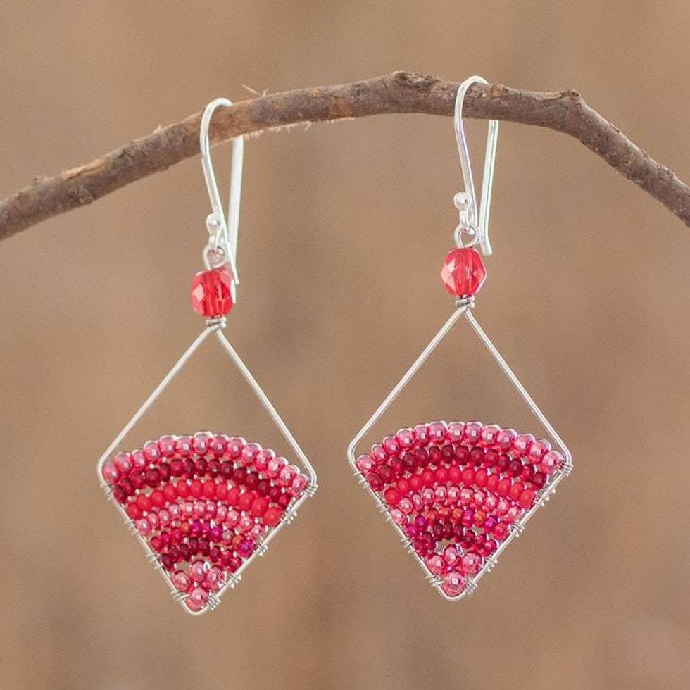 Red Beaded Dangle Earrings With Sterling Silver Hooks 'Red Beaded Rainbow' Item ID: 2676659384