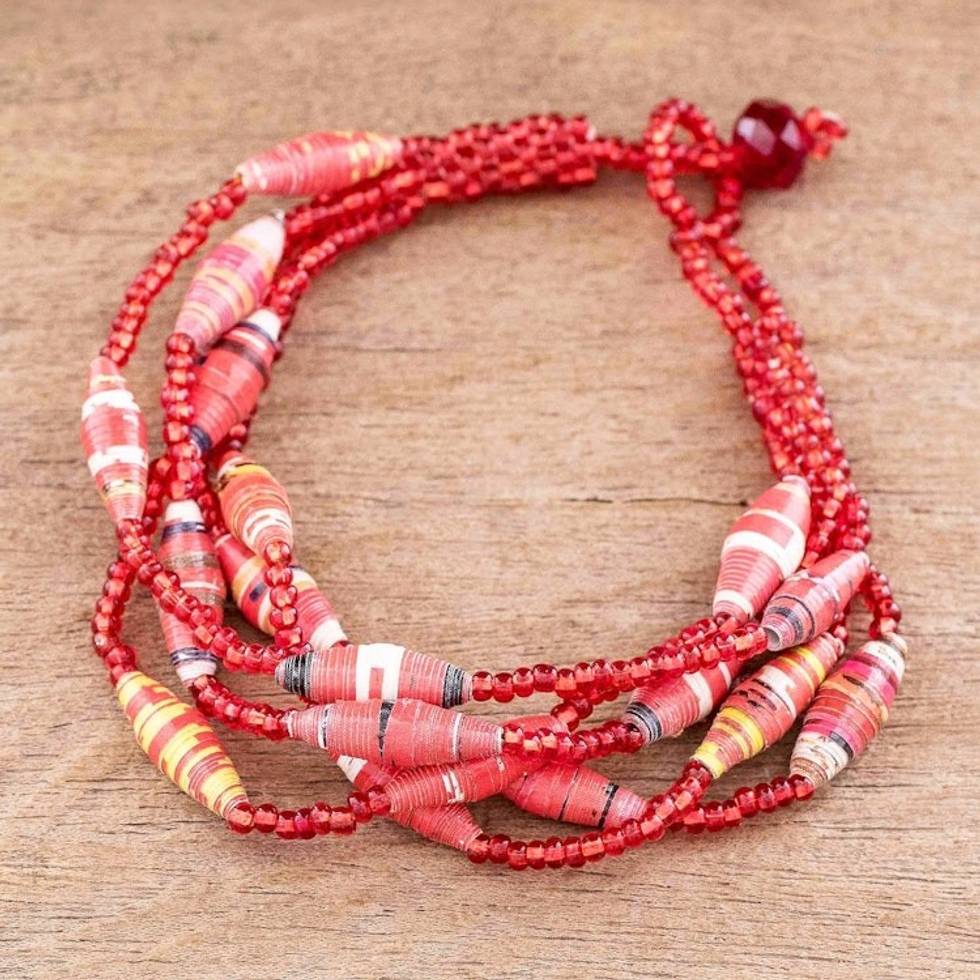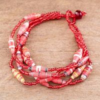 Red Beaded Recycled Paper Bracelet 'Bonds of Friendship in Red' Item ID: 2671772031