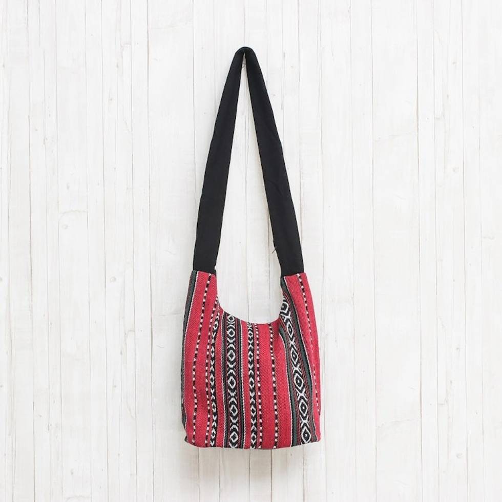 Red Black and White Handwoven Cotton Blend Shoulder Bag 'Woven Cheer' Item ID: 2671799217