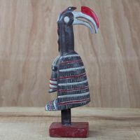 Red Black Off-White Mother and Baby Bird Wood Sculpture 'Bird at Rest' Item ID: 2671805658