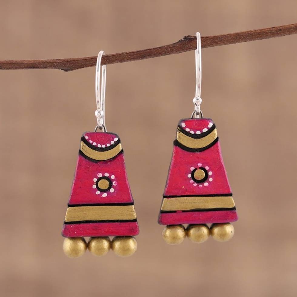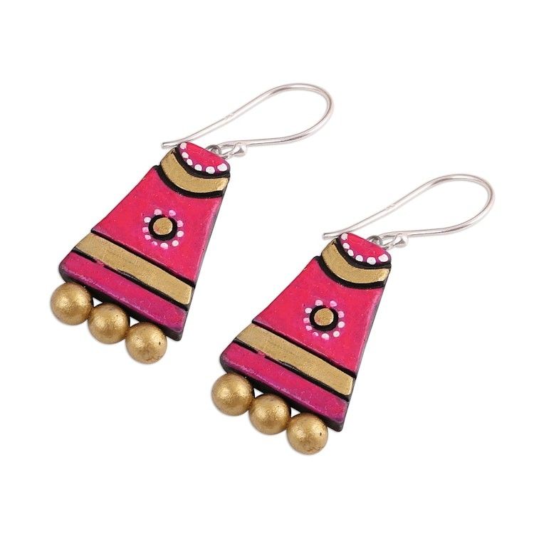Red Ceramic Dangle Earrings Handcrafted in India 'Tribal Mounds' Item ID: 2671790075