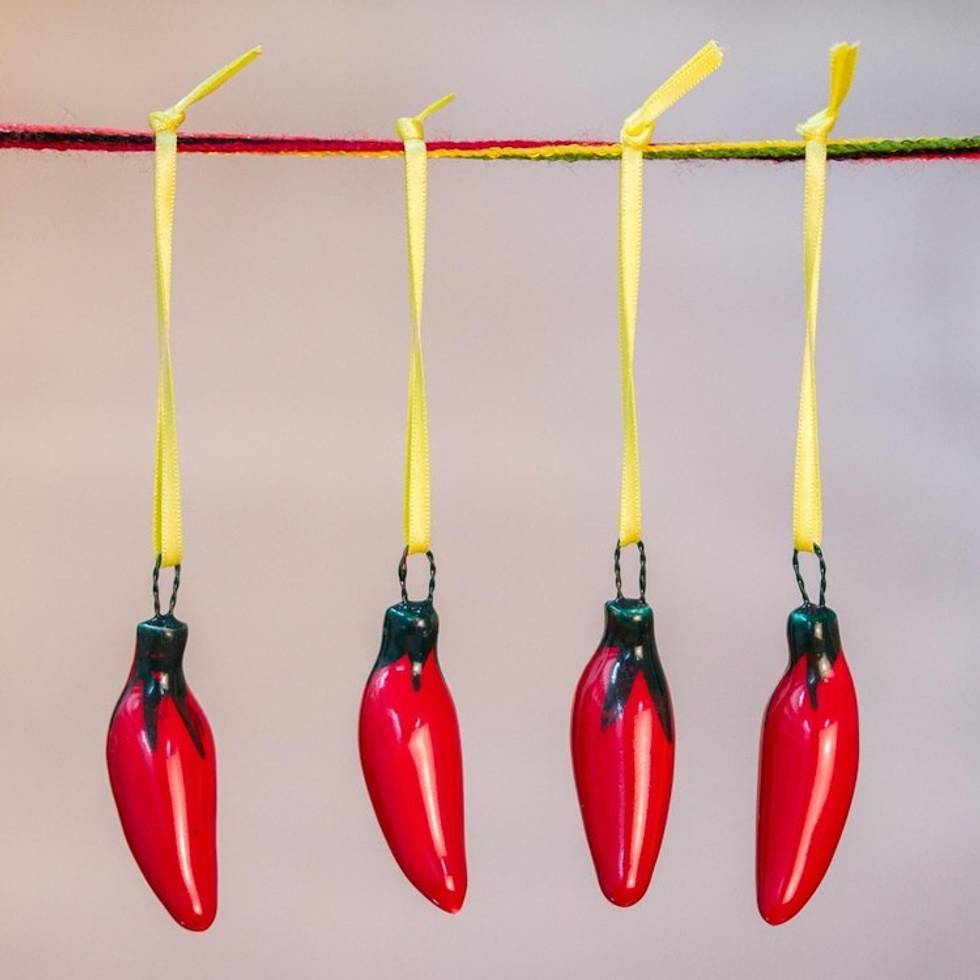 Red Ceramic Serrano Pepper Ornaments Set of 4 'Serrano Peppers in Red' Item ID: 2671808805