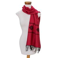 Red Cotton Blend Scarf with Black Stepped-Fret Rhombus Motif 'Fret Chic in Red' Item ID: 2671777311