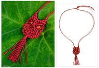 Red Cotton Macrame Owl Necklace 'Scarlet Owl' Item ID: 2669925685