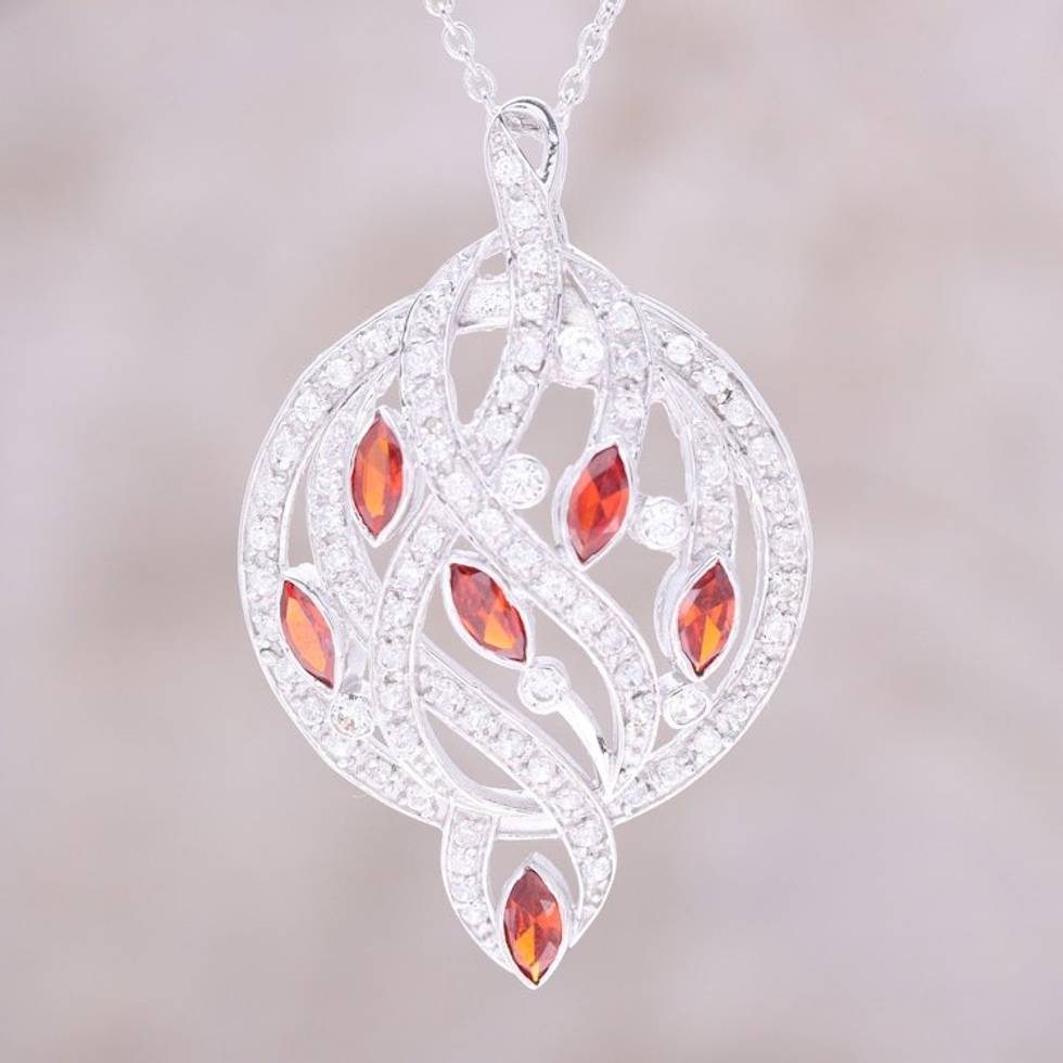 Red CZ Rhodium Plated Sterling Silver Pendant Necklace 'Glittering Elegance' Item ID: 2671792366