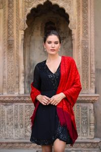 Red Embroidered 100 Wool Shawl from India 'Ruby Romance' Item ID: 2669892147