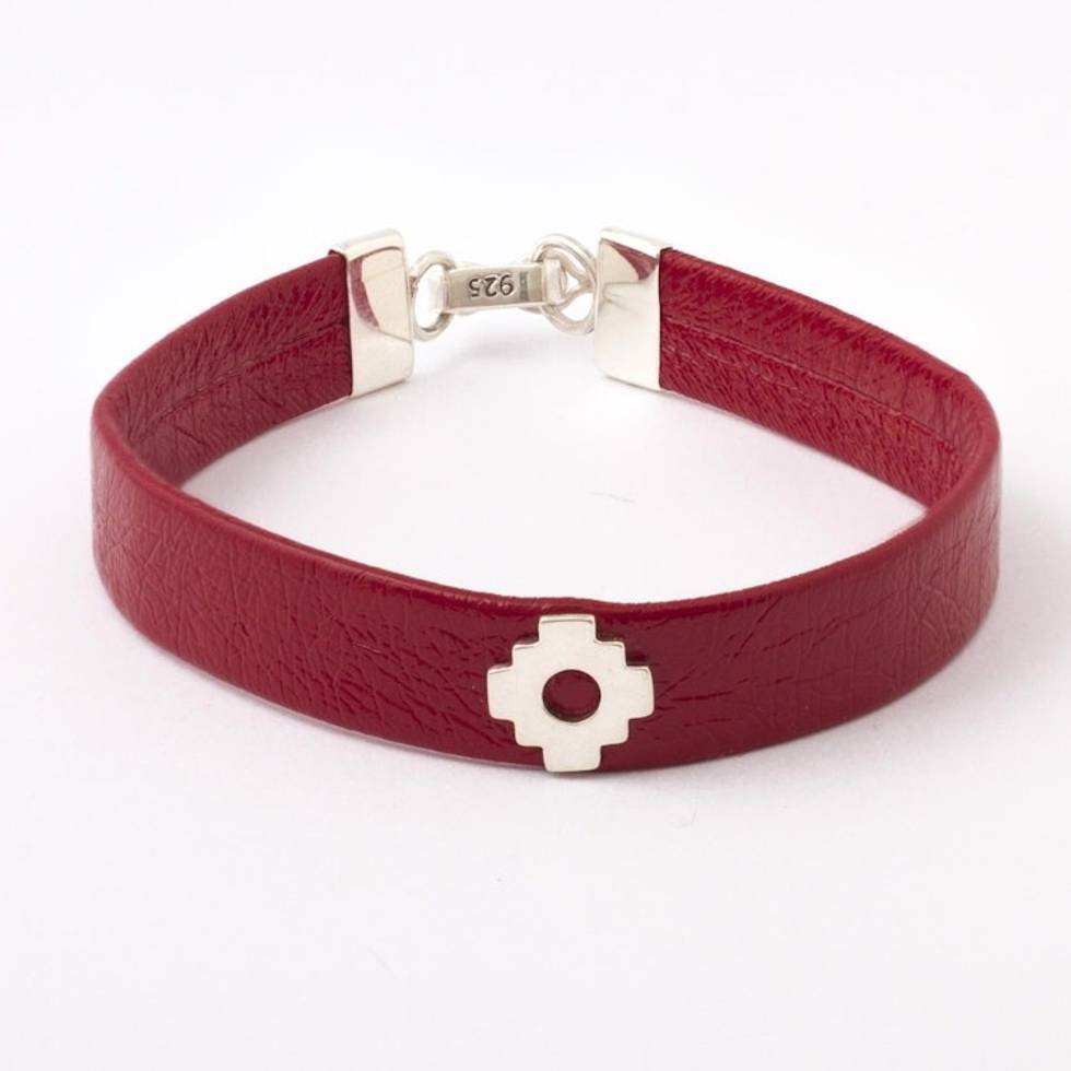 Red Faux Leather Unity Bracelet with Sterling Silver 'Red Chacana Unity' Item ID: 2671691400