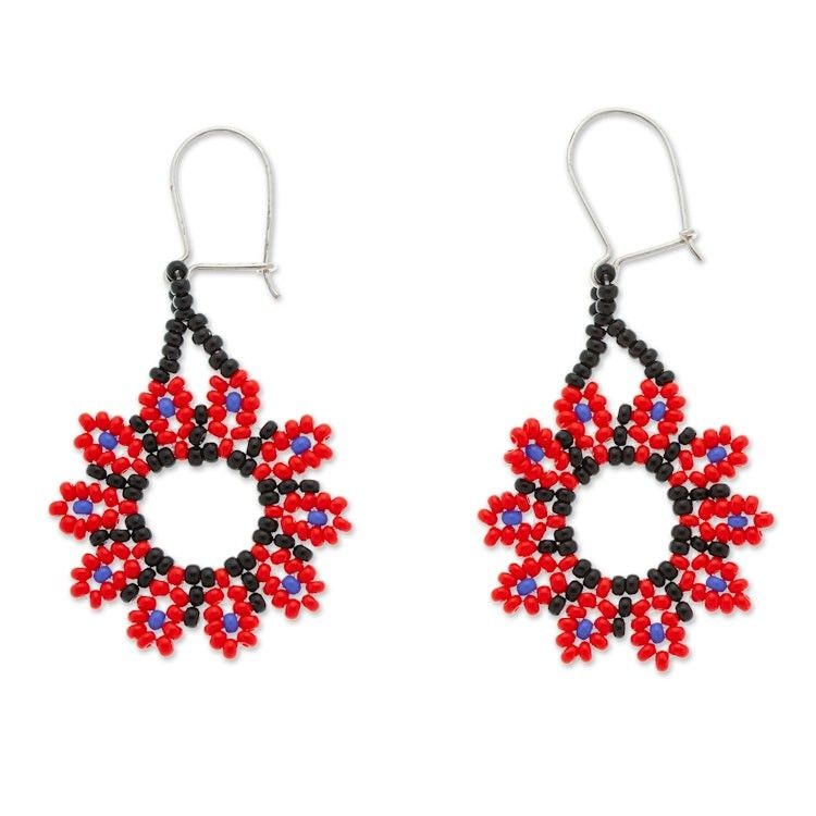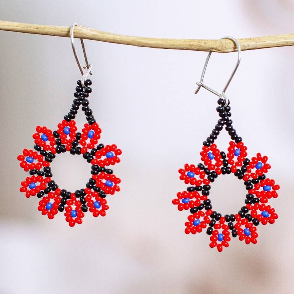 Red Floral Beaded Dangle Earrings Handcrafted in Mexico 'Blooming Red' Item ID: 2671807651