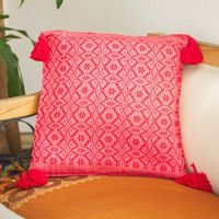 "From Mexico's Margarita Ruiz, this bright red cushion cover features diamonds and circles converging in an all-over pattern. The artisan weaves the cover on a traditional pedal loom from 100% cotton, adding tassels to the four corners. A zipper on the back allows for the insertion of a cushion."