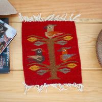 Red Handwoven Zapotec Style Bird Decorative Wool Table Mat 'Red Bird Kingdom' Item ID: 2676647229