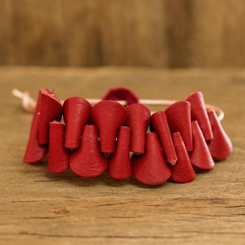 Red Leather Bracelet from Costa Rica 'Crimson Bridge' Item ID: 2671771931