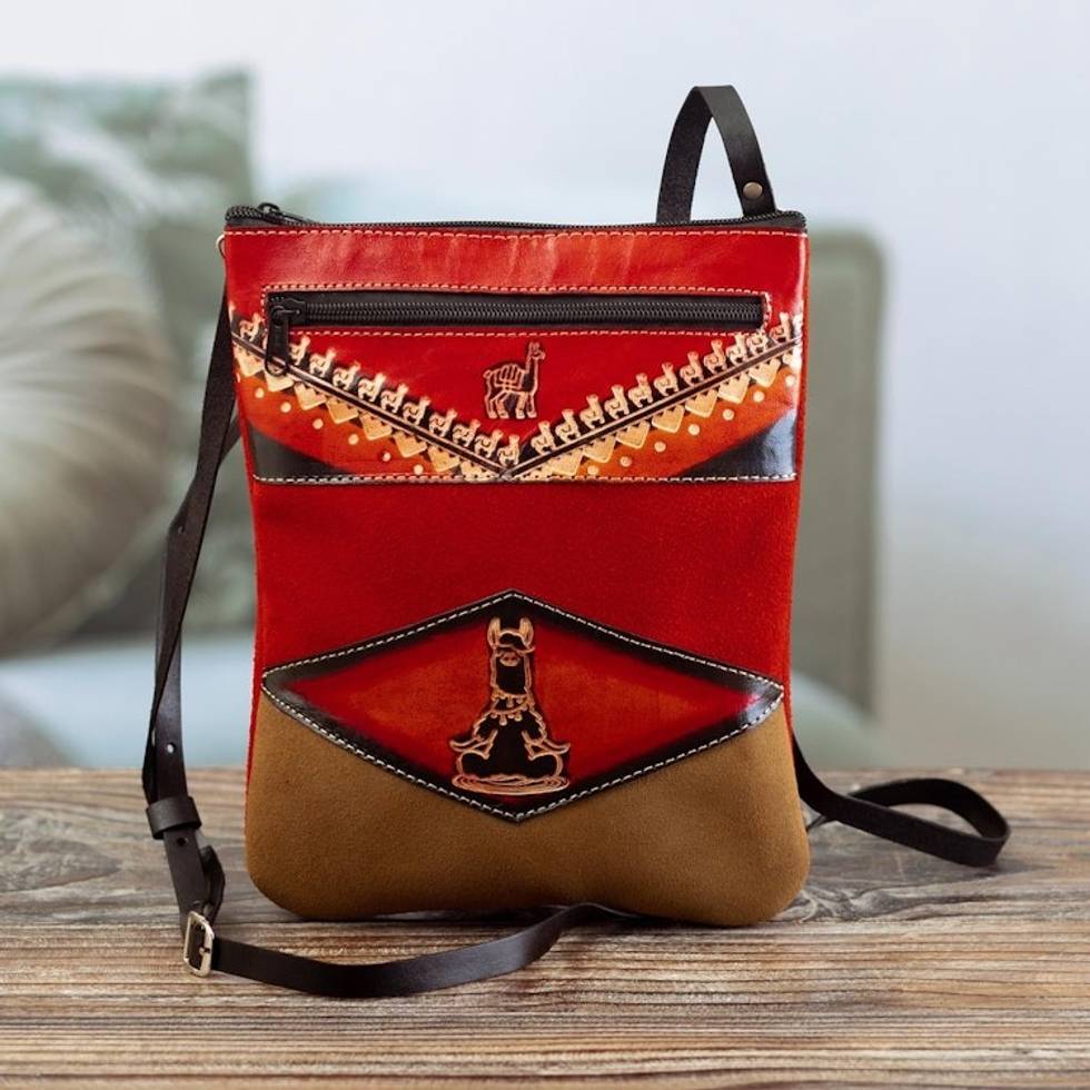 Red Llama Suede Sling with Adjustable Leather Strap 'Little Red Llama' Item ID: 2671399948