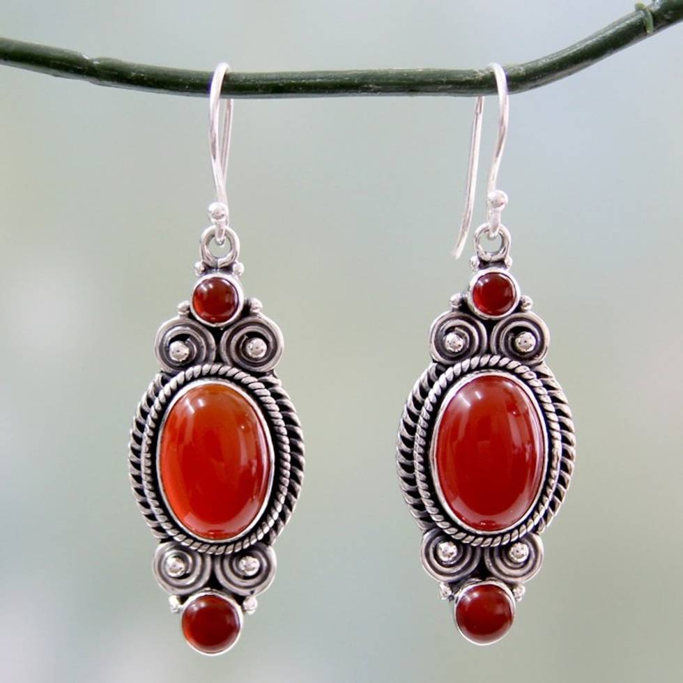 Red Onyx and Sterling Silver Dangle Earrings from India 'Johari Sunset' Item ID: 2671618905
