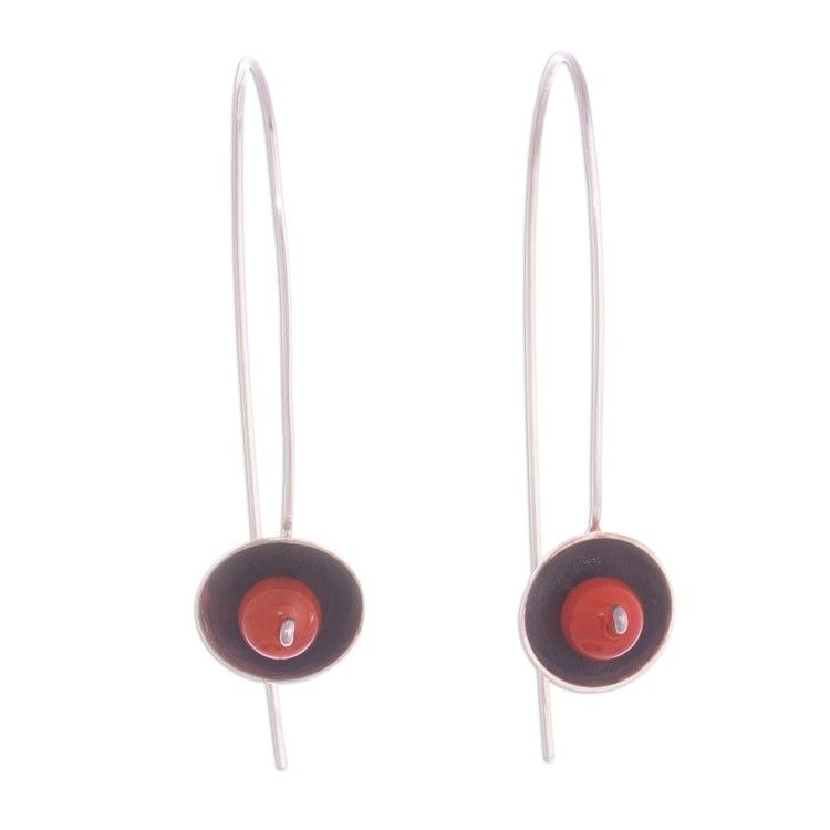 Red-Orange Agate and Sterling Silver Drop Earrings from Peru 'Wondrous Galaxy in Red-Orange' Item ID: 2671691340