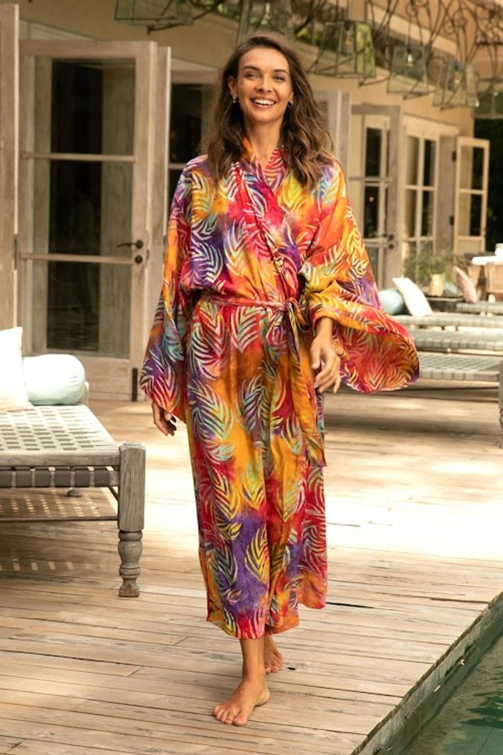 I saw this robe on the website and I fell in love with it! The colors are bright, beautiful and positive! I just had to have it. So I ordered it and I'm so happy I did. It came rather quickly and was I happy! I absolutely love it. It looks beautiful on and it feels so good on my body. It's comfortable and gorgeous. I liked it so much I've ordered two more. Different patterns of course! LOL Thank you for such a beautiful and well made product!