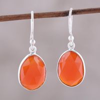 Red-Orange Onyx Dangle Earrings from India 'Passionate Flame' Item ID: 2671619527