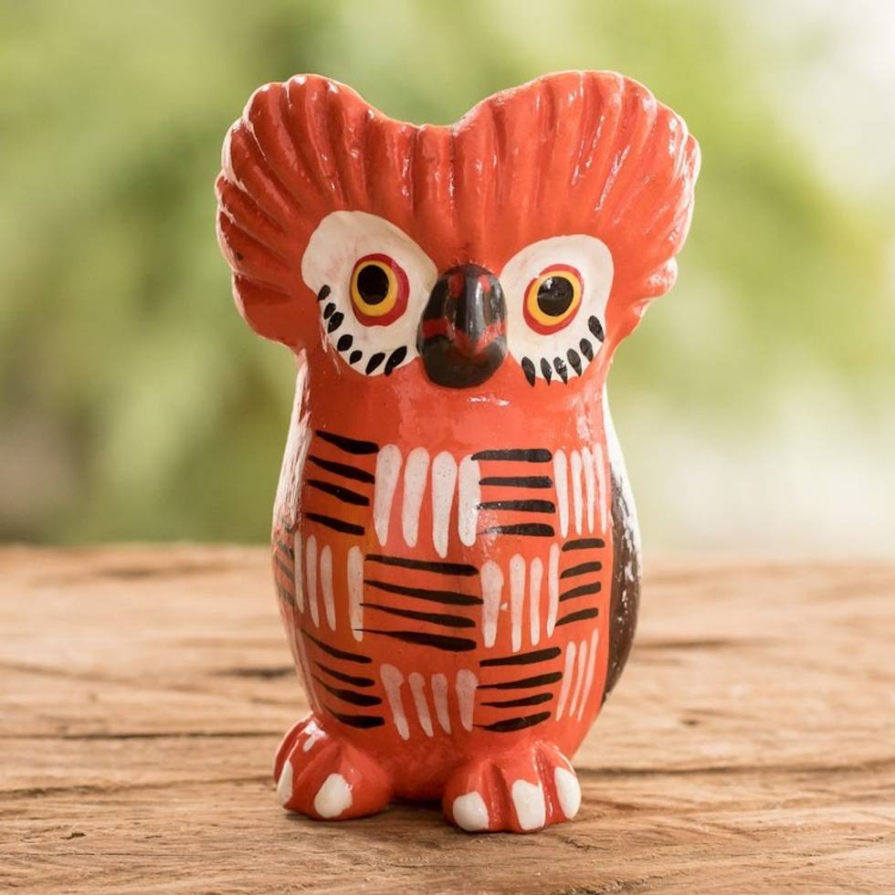 Red Owl-shaped Ceramic Figurine Handmade in Guatemala 'Summer Tecolote' Item ID: 2671771840