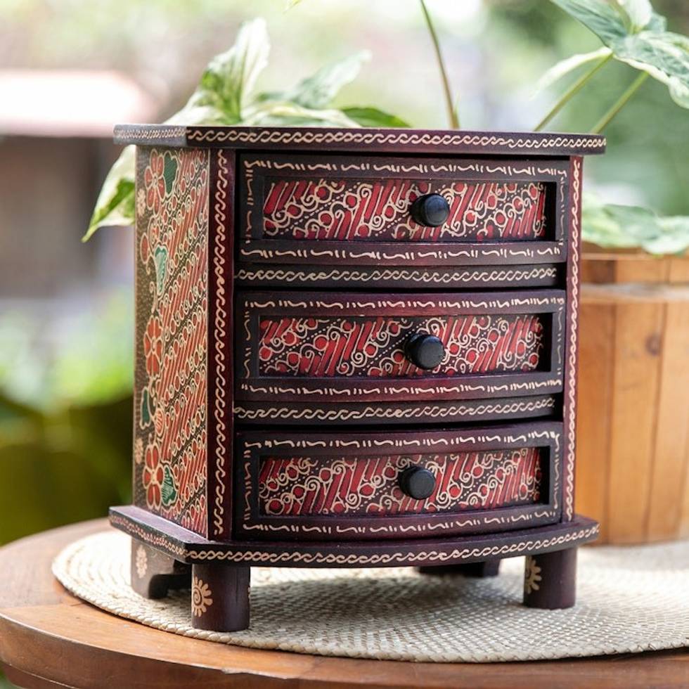 Red Parang Motif Handcrafted Wood Batik Jewelry Box 'Scarlet Scrolls' Item ID: 2671734251