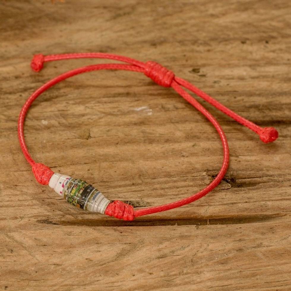Red Recycled Paper Pendant Bracelet with Adjustable Cord 'Earth's Riches in Red' Item ID: 2671770818