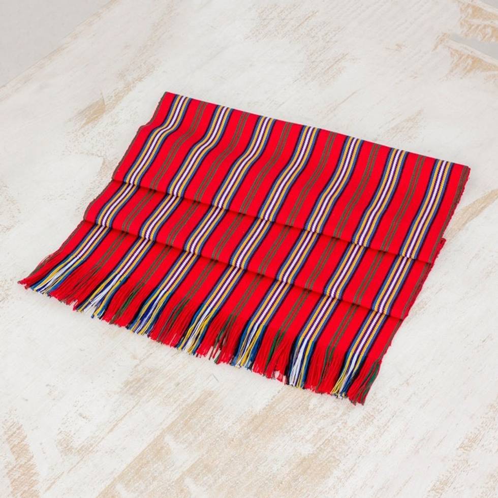 Red Striped 100 Cotton Table Runner from Guatemala 'Latin Festival' Item ID: 2671778709