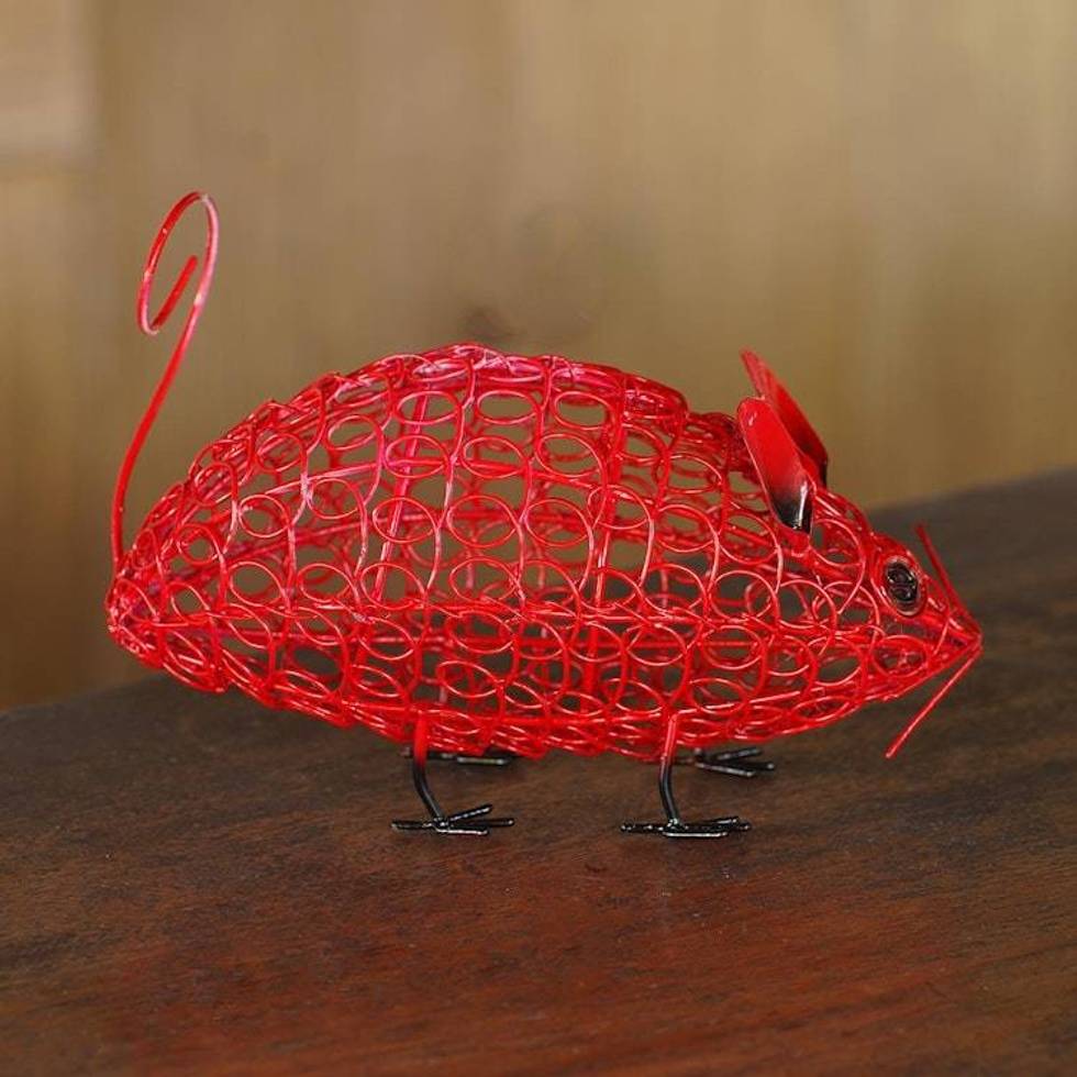 Red Wrought Iron Mouse Statuette 'Curious Mouse' Item ID: 2676667672