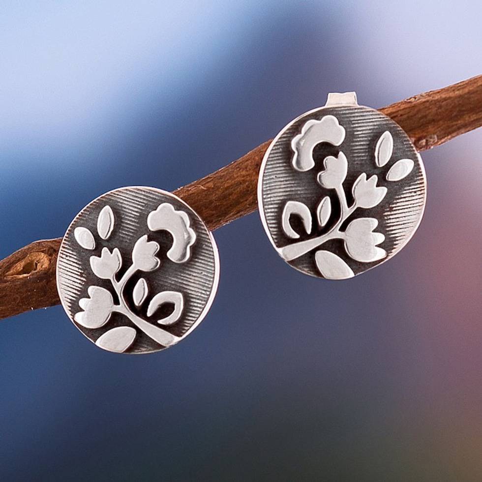 Relief Sterling Silver Floral Stud Earrings from Peru 'Cotton Flowers' Item ID: 2671697872