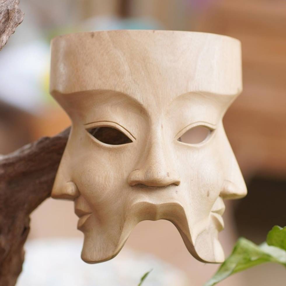 Religious Hibiscus Wood Mask 'Hindu Divine Trinity' Item ID: 2671698296