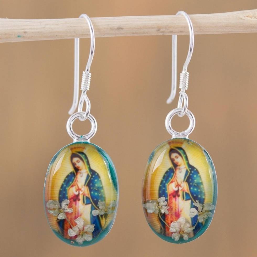 Religious Natural Flower Dangle Earrings from Mexico 'Flowering Faith' Item ID: 2671808681