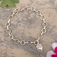 Religious Sterling Silver Heart Link Bracelet from Peru 'Divine Heart' Item ID: 2671400266