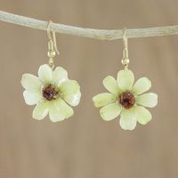 Resin Coated Natural Zinnia Dangle Earrings from Thailand 'Yellow Summertime Zinnia' Item ID: 2671800799