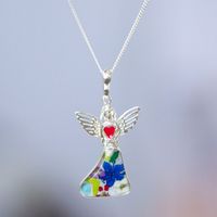 Resin-Preserved Natural Flower Silver Angel Pendant Necklace 'Angelic Heart' Item ID: 2671798831