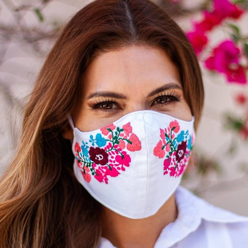 Reusable Floral Embroidered Cotton Face Mask 'Summer Roses' Item ID: 2671808076
