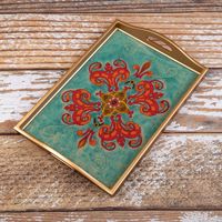 Reverse-Painted Glass and Wood Serving Tray Handmade in Peru 'Sweet Spring Flower' Item ID: 2671399785