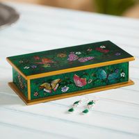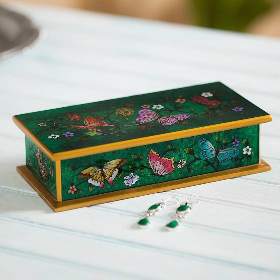 Reverse Painted Glass Butterfly Decorative Box in Emerald 'Butterfly Jubilee in Emerald' Item ID: 2669908207