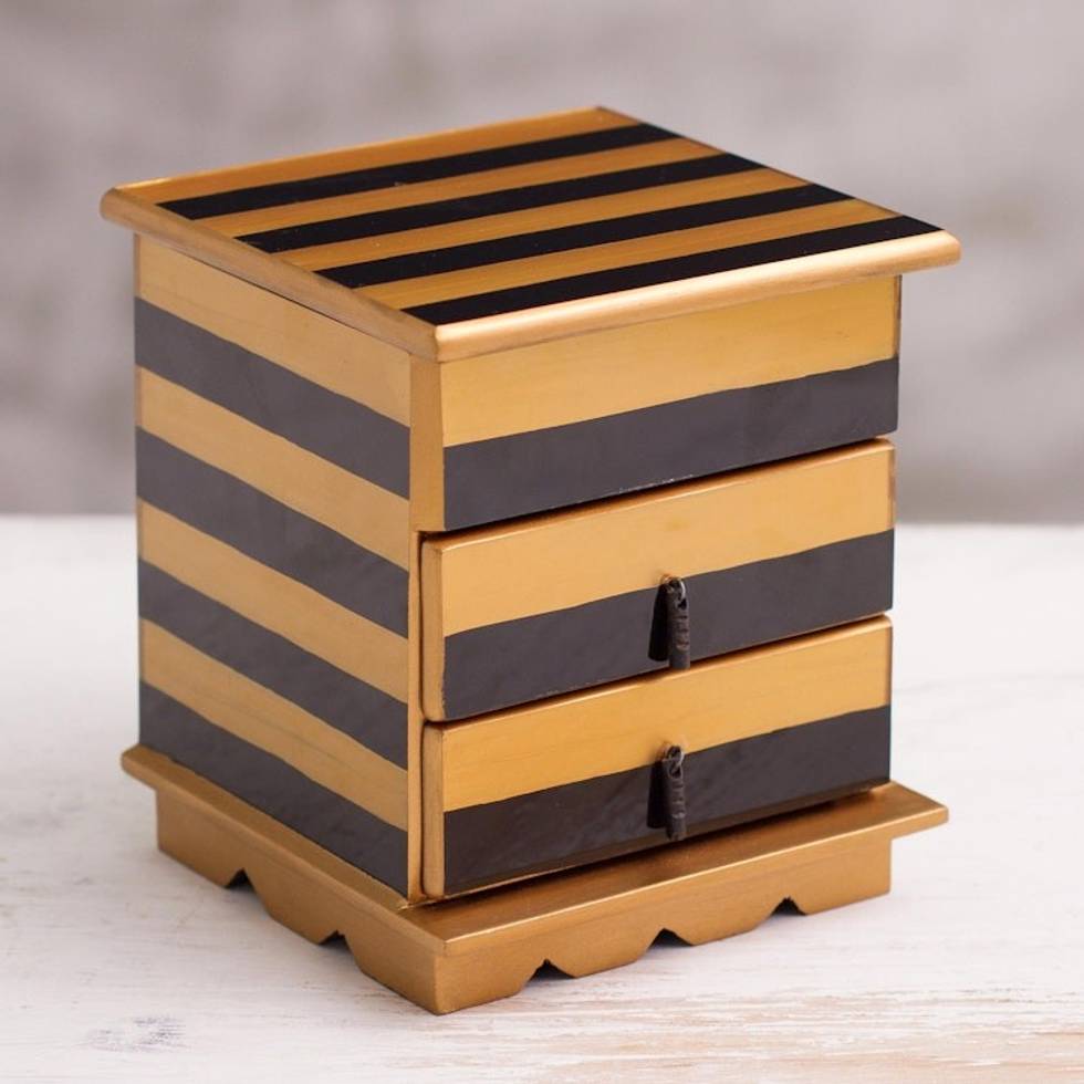Reverse-Painted Glass Jewelry Chest in Gold and Black 'Modern Gleam' Item ID: 2671819545