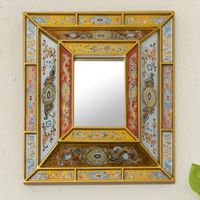 Reverse Painted Glass Mirror with Floral Motifs from Peru 'Florid Wonder' Item ID: 2671820455