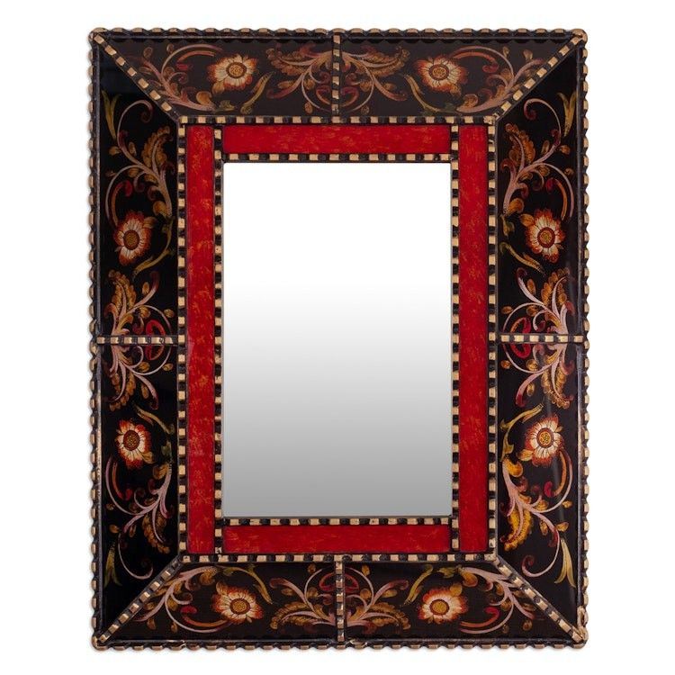 Reverse Painted Glass Wall Mirror with Floral Leaf Motifs 'Autumn Flowers' Item ID: 2671698144