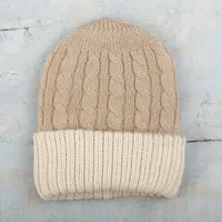 Reversible 100 Alpaca Cable Knit Hat in Ivory and Beige 'Warm and Snuggly' Item ID: 2671695422