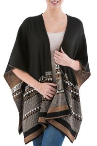 Reversible Alpaca Blend Ruana in Black and Golden Brown 'Incan Kingdom in Golden Brown' Item ID: 2669908213
