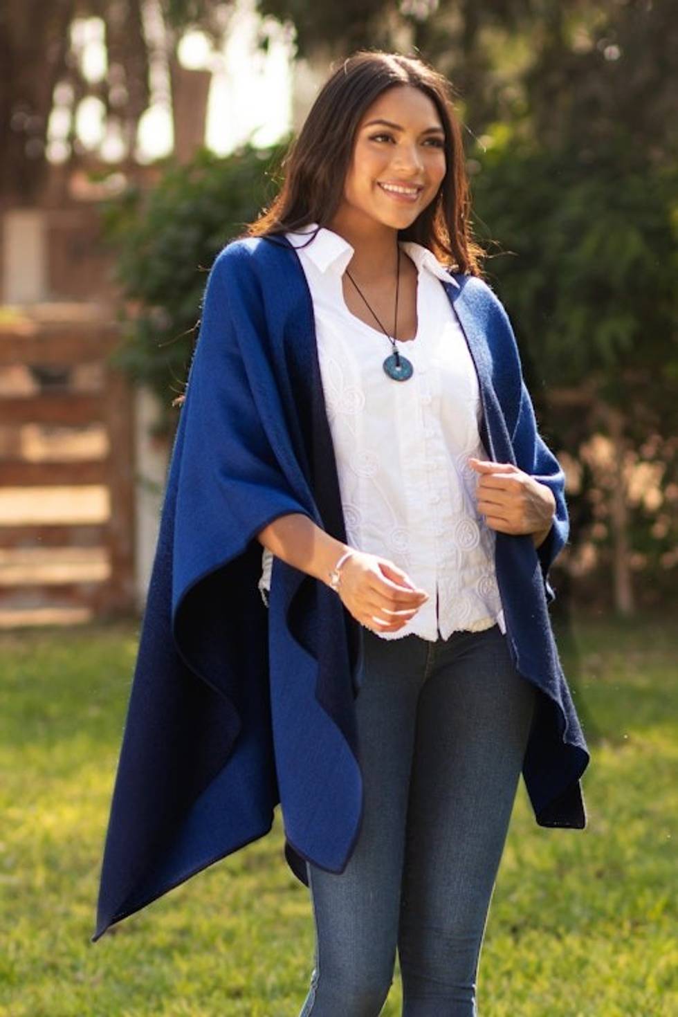 Reversible Alpaca Blend Ruana in Cornflower and Navy 'Andean Wind in Cornflower' Item ID: 2671819280