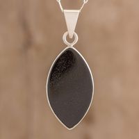 Reversible Black and Light Green Jade Pendant Necklace 'Ancient Leaf' Item ID: 2671779850