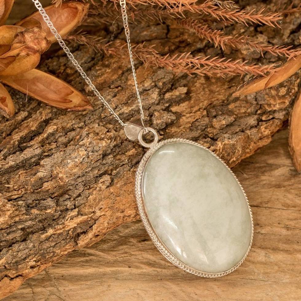 Reversible Silver and Apple Green Jade Maya Pendant Necklace 'Treasures of My Land' Item ID: 2671769215