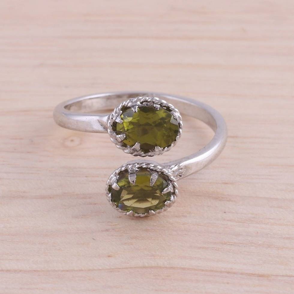 Rhodium Plated 3-Carat Peridot Wrap Ring from India 'Rapturous Nature' Item ID: 2669924245
