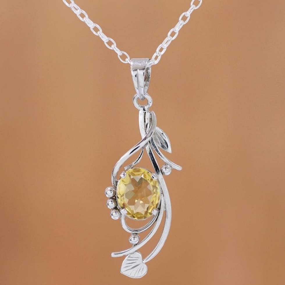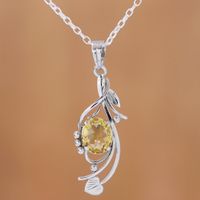 Rhodium Plated 4-Carat Citrine Pendant Necklace from India 'Graceful Vine' Item ID: 2671790151