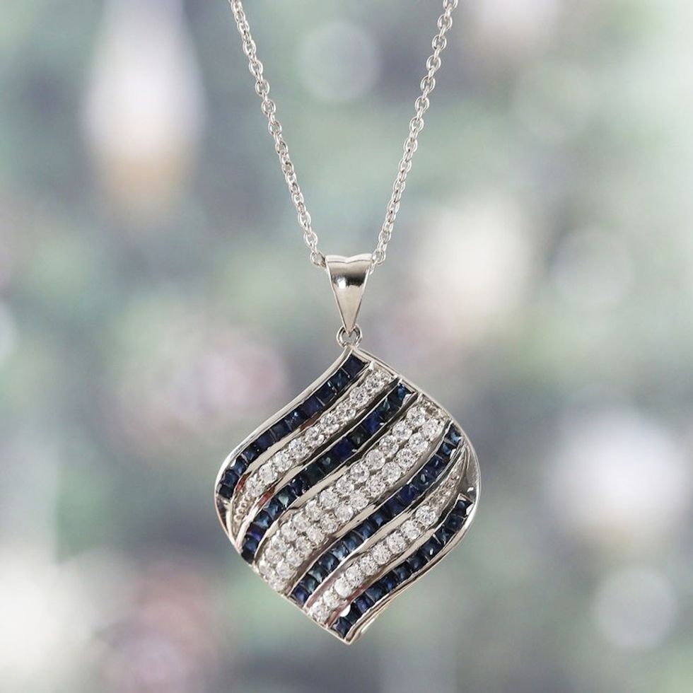 Rhodium-Plated 4-Carat Sapphire and Cubic Zirconia Necklace 'Sparkling Winter' Item ID: 2671781059