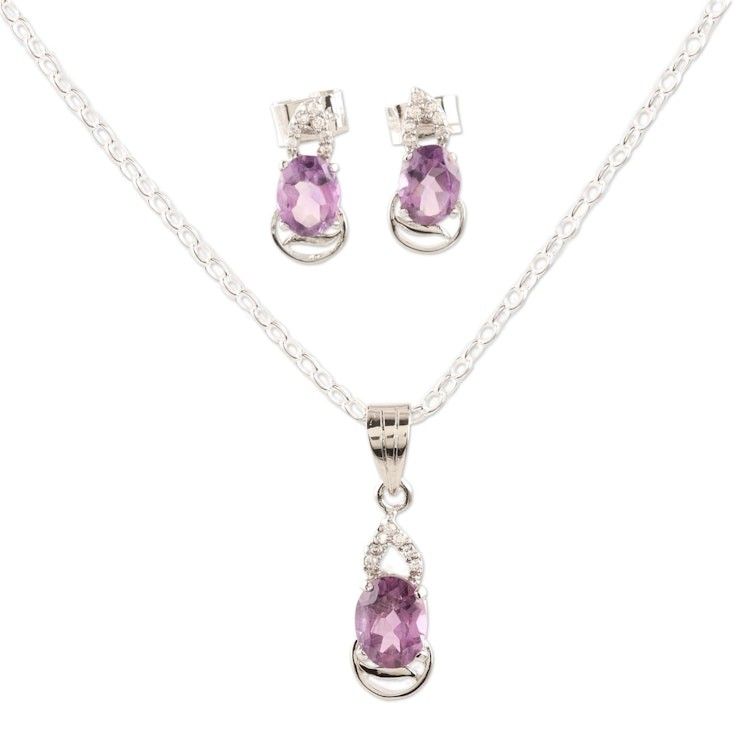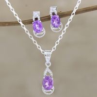 Rhodium-Plated Amethyst and Cubic Zirconia Jewelry Set 'Peppy in Purple' Item ID: 2671789012