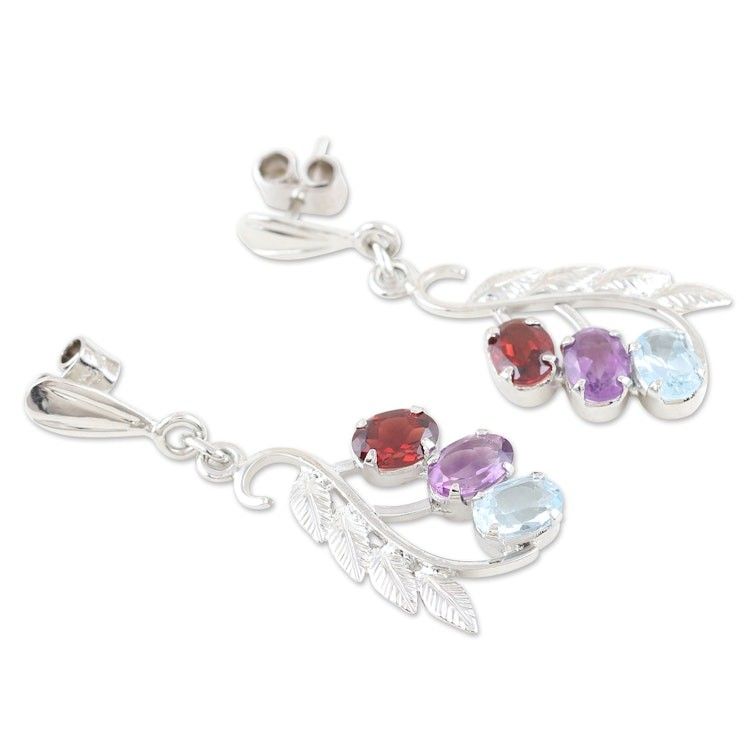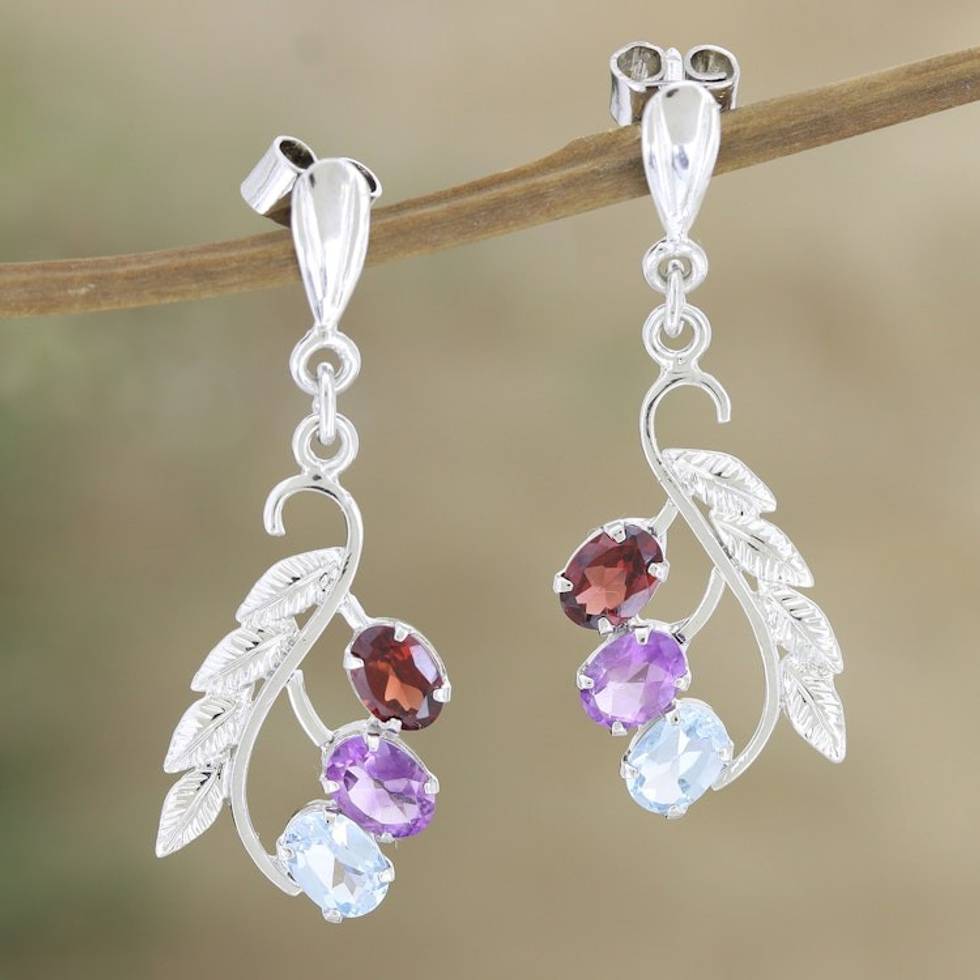 Rhodium-Plated Amethyst and Garnet Dangle Earrings 'Changing Foliage' Item ID: 2671788396
