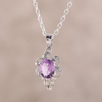 Rhodium Plated Amethyst Pendant Necklace from India 'Lilac Elegance' Item ID: 2671792938