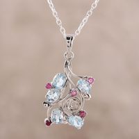 Rhodium Plated Blue Topaz and Ruby Pendant Necklace 'Delightful Berries' Item ID: 2671792125